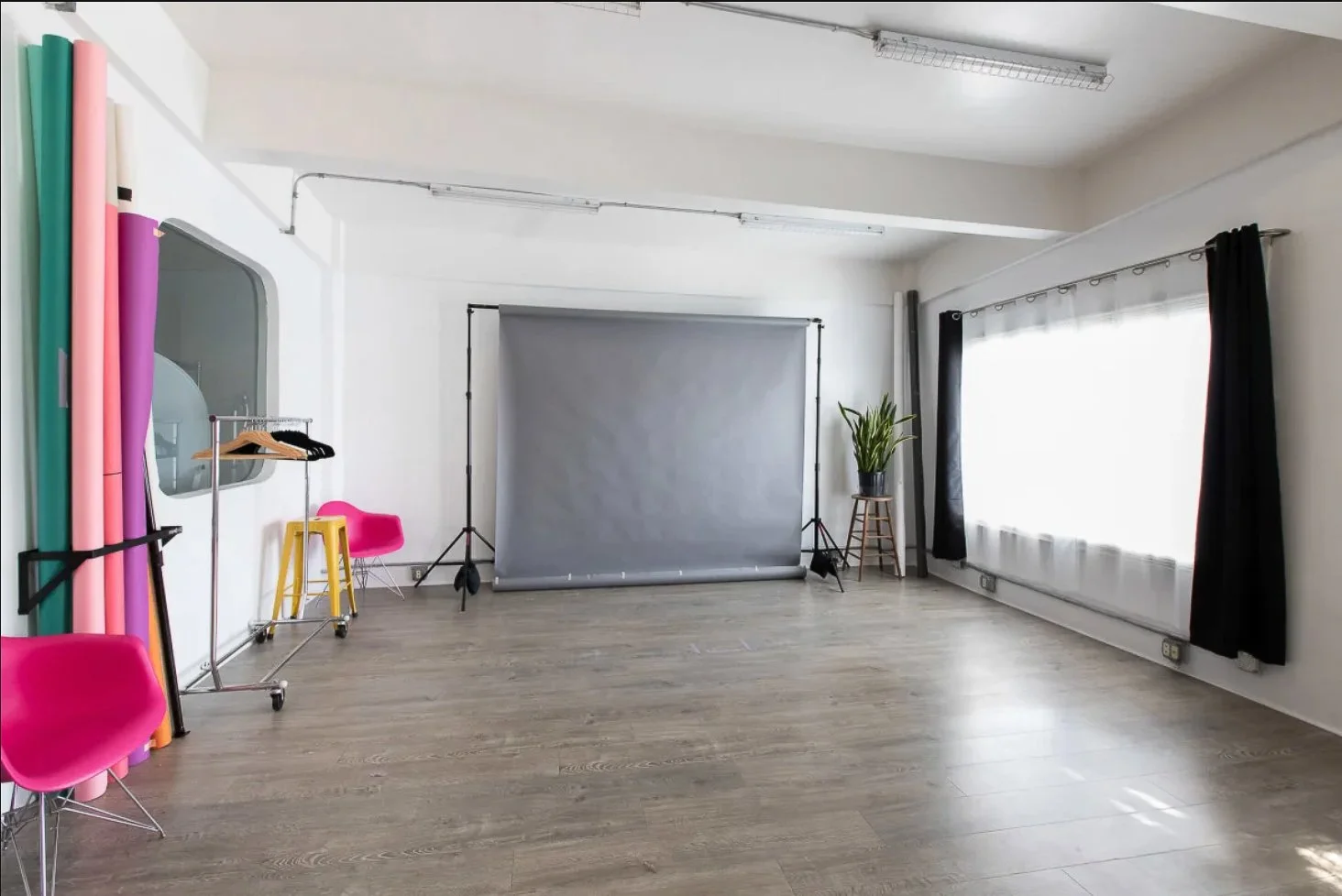 • 700 square feet (18’x20’ shoot/meeting space, 11’x11’ lounge/entryway area)
